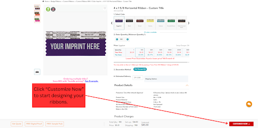 Start by choosing one of our customizable badge ribbon options and click "Customize Now" on the product detail page to get started.